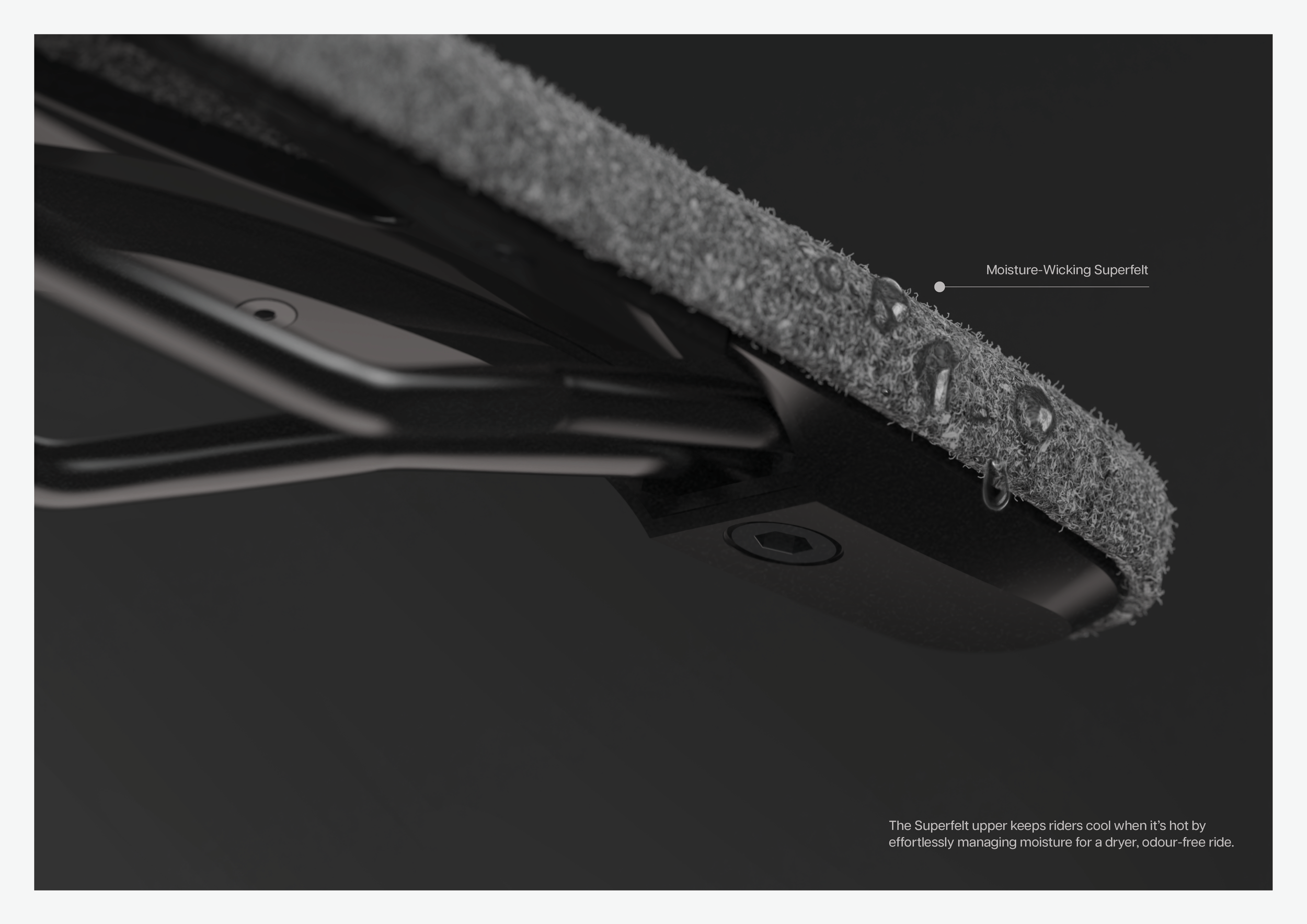 Crafted from New Zealand’s strong wool, Helix redefines your ride by tackling the discomforts that synthetics miss. The saddle’s resilient felted wool padding gives purpose to shorter fibres, a by-product of the wool industry. This padding, in combination with the raised rear profile, cradles the sit bones while a hidden shell cutout relieves pressure on the soft tissue.